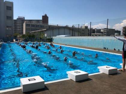 体調を整え、水分補給をしっかりと行い、水泳の学習をしてください。