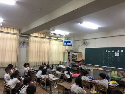 雨天のため、テレビによる放送による朝会です。