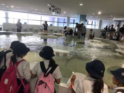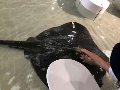 エイに触っています。