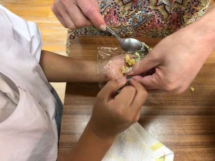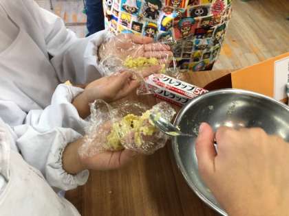 なかよし学級の児童が、学習園で収穫した「サツマイモ」を料理しました。