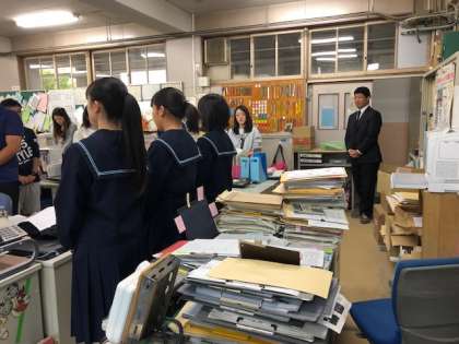 横堤中学校の2年生3名が、職場体験学習をするための挨拶をしました。