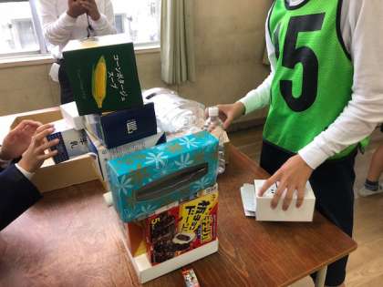 箱を積み上げます。グラグラと崩れそうです。