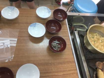 ごはんの炊き具合やみその量を子どもたちは工夫しています。