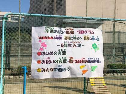 卒業お祝い集会を、気持ちのよい晴天の中で実施しました。