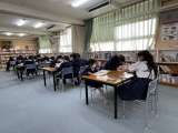 音楽部、文芸部の様子です。 優しく教えてくれる中学生に、和気あいあいと楽しく、笑...