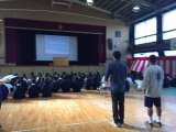 明日の40周年記念行事に向けて準備をしています。 講堂(体育館)の椅子出しをしま...