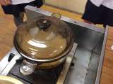 5年生家庭科の様子です。 調理実習です。 ご飯とみそ汁をつくっています。