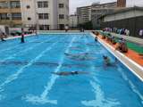 体育科 水遊び ロケットになって、進みます。水にもずいぶん慣れてきたようです。