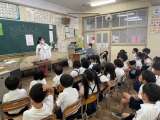 先生がひとりひとりに通知表を渡していました。 楽しい夏休みになるといいですね。