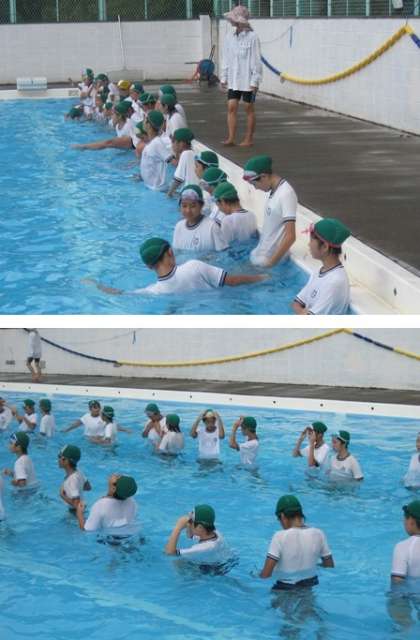 参観の最後には、着衣咏の授業も行われました。体操服を着て水に入ったとたん、「重い〜」という声があちこちから聞こえてきました。