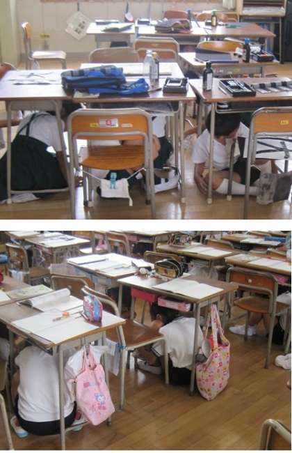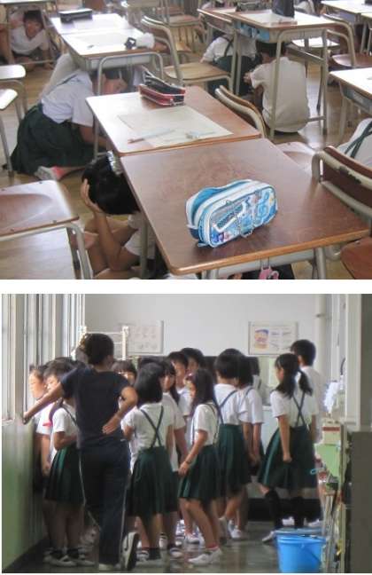 児童は、午前11時に流された広域放送に合わせて児童は一斉に机の下に隠れて身を守る避難行動を行いました。
