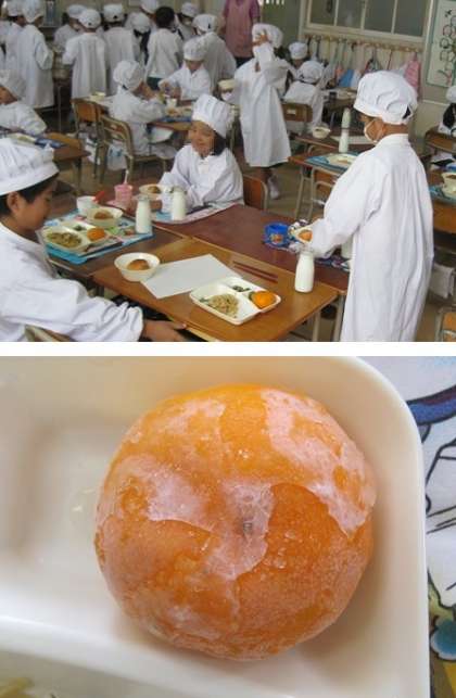 今日は、給食に冷凍みかんが出ました。もっと、気温が高い日の方が児童は喜んだのでしょうが、教室は蒸し暑いので、冷たいミカンは児童に大人気です。