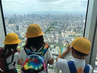 雨の予報でしたが、みんなの力でお昼には太陽が出てきてあべのハルカスからも町の様子がしっかり観察できました!