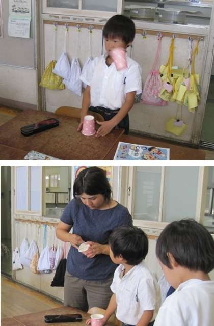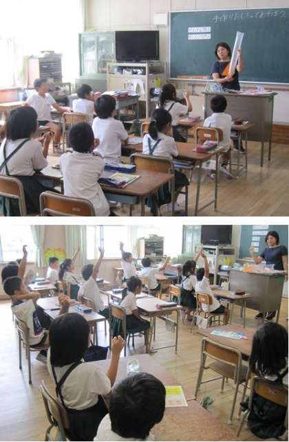 「あそび大好き あつまれ」という単元で、今日は、担任の先生が準備した手作りおもちゃであそびました。動かし方を工夫して、グループの友だちと楽しく遊ぶことを目標に学習しました。