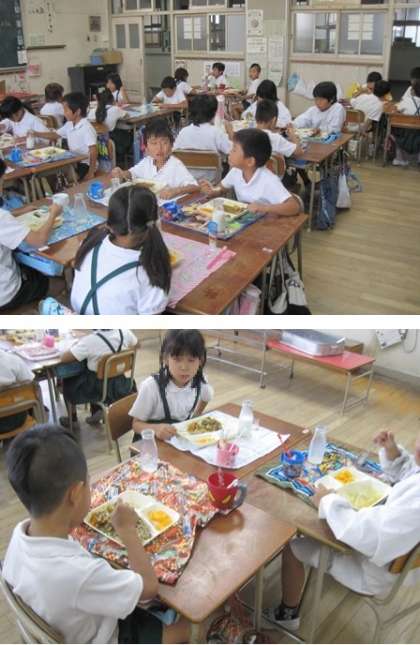 給食のカレーの味つけやとろみをつけるカレールウの素には小麦粉が使われています。今回のカレーライスは、小麦粉の代わりに米粉を使ったカレールウの素で味付けし、とろみをつけました。小麦粉アレルギーのある人でも食べることのできるカレーです。