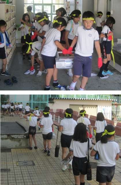3年生は蛍光ピンク、4年生は蛍光イエローのはちまきです。