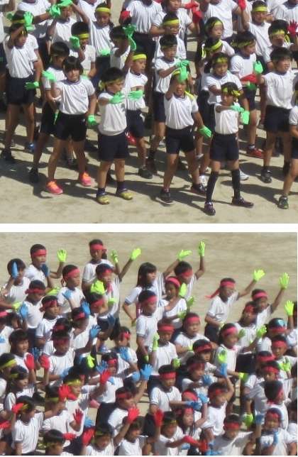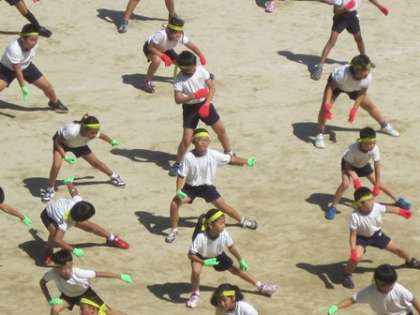 3,4年生による団体演技 響−Hibiki−の練習風景です。
