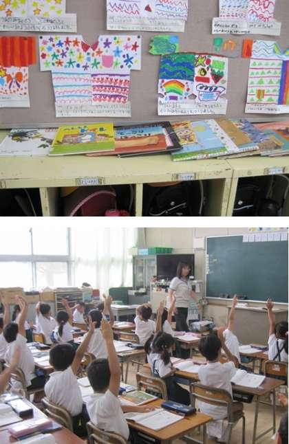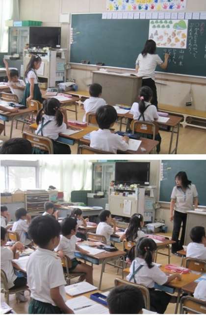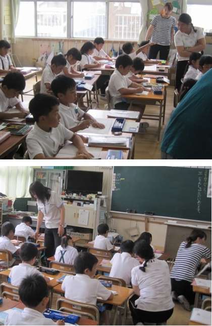 1年生の児童は、絵を見て一生懸命漢字を使って文づくりをしていました。