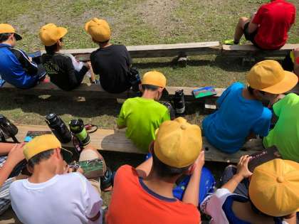 1日目に作った焼き板に絵を描いています。どの子も三日間の思い出が詰まった作品を仕上げています。