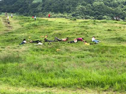 高原遊びではおにごっこをしたり高原を転げ落ちたりして思いっきり遊んでいます。
