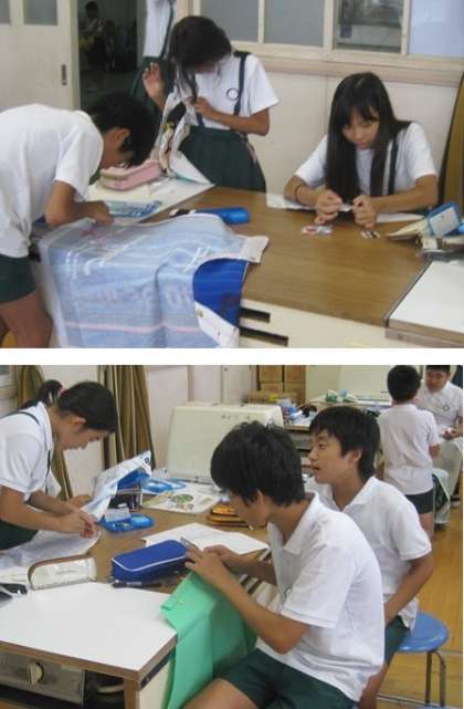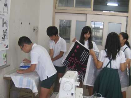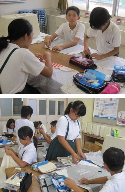 6年生のエプロン製作風景です。