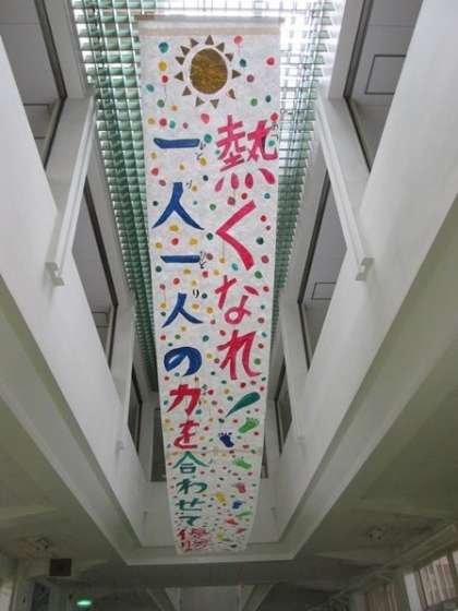 運動会のめあての垂れ幕をピロティーに掲示しました!