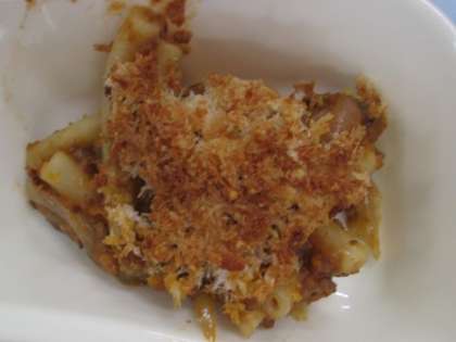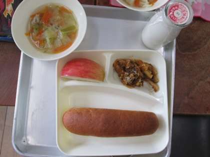 「ちょうちょう」の形をしたものや、アルファベット(英語の文字)の形をしたものや、車輪型のもの、ねじれたものなどもあります。今日のミートグラタンの中には、エルボといわれる代表的な形が使われていました。中央に穴があいています。