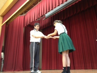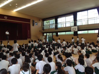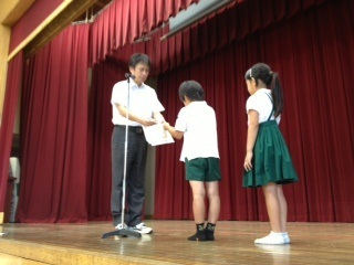 最初に校長先生のお話を聞いたあと、図画(花と緑の絵)で入賞した人たちに賞状が渡されました。
