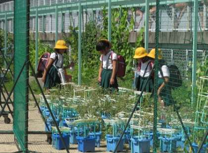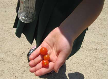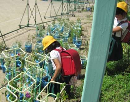 2年生は、学習を終えて下校前に自分のミニトマトの様子をよく見に行っていました。その時の写真です。