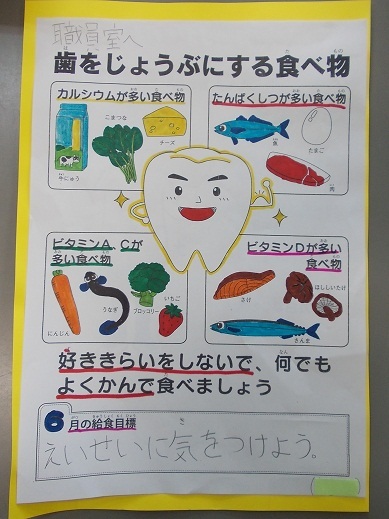 給食委員会では、各学級に掲示する6月の給食目標を制作しました。
