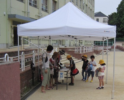 PTAの方に東門の安全確認とプール受付をお手伝いいただいています。