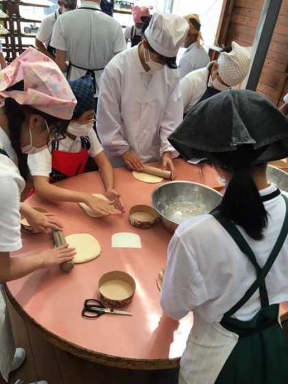 いよいよ、生地をのばしてブルーベリーソースを塗って焼くだけです!