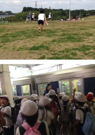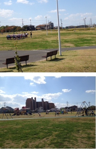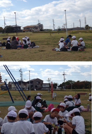 公園では「花子さんの、だい1ぽ」や「ふえおに」などをしてあそびました。広々した公園で思いっきり遊びました。