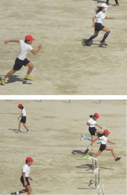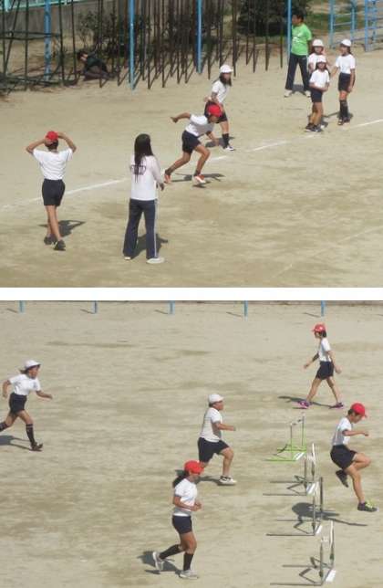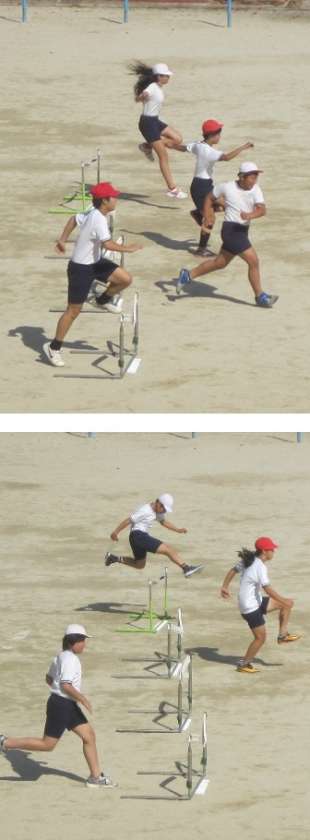 フォームに気をつけながらハードルを飛ぶ練習をしました。