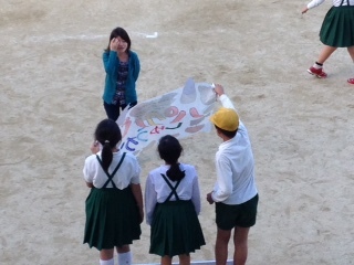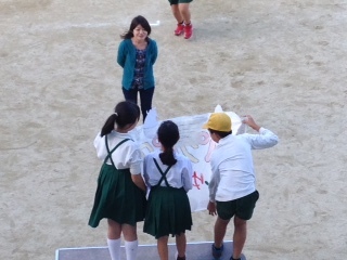 給食委員会の児童が、月曜日の児童朝会で「パクパク週間」について説明しおかずを残さずに食べるように呼びかけるために練習していました。