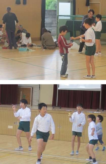出来上がった紙飛行機をさっそく飛ばしてみました。