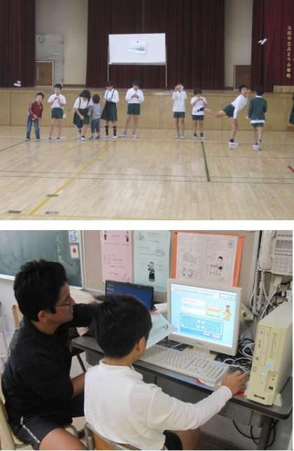 写真4枚目、特別支援教室ではパソコンを使ってローマ字の学習をしていました。