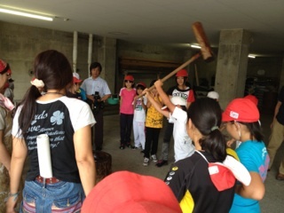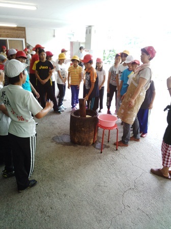 11時20分ごろ、無事到着し最初のプログラムのお餅つきをしました