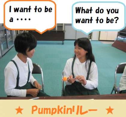 学習の最後は、その表現を使ってパンプキンリレーをしました。
