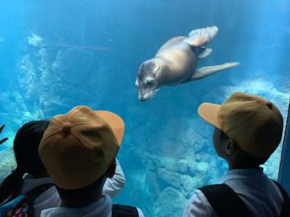 遠足で海遊館に行ってきました。天候にも恵まれ昼ごはんは、大きな船を見ながら食べました。最後に、天保山に登頂して帰ってきました。
