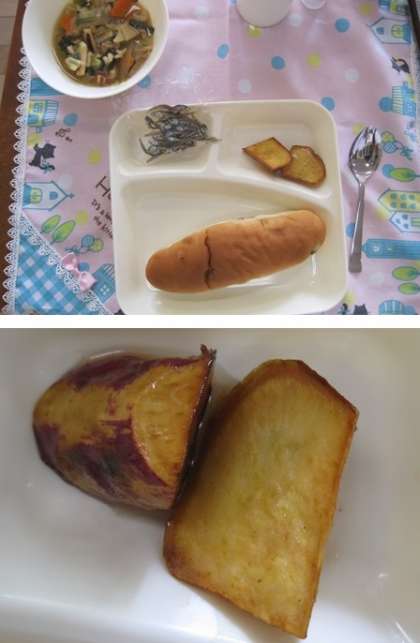 甘くて、外側がカリッとしている大学いもは児童に大人気のこんだてです。