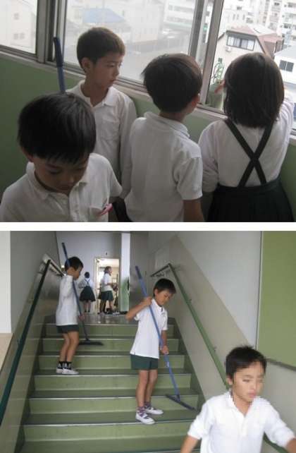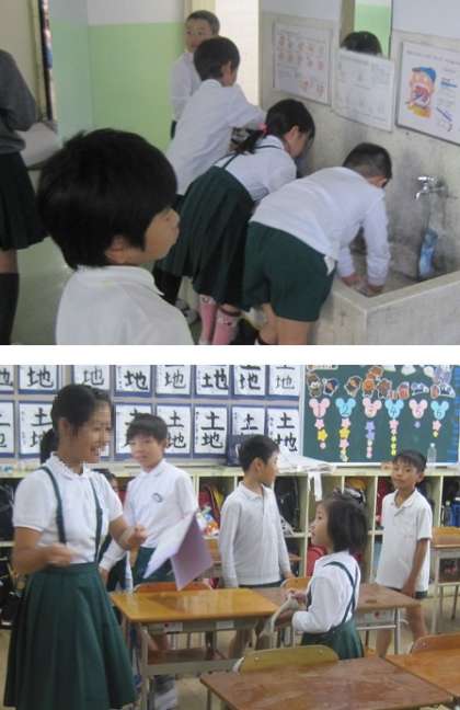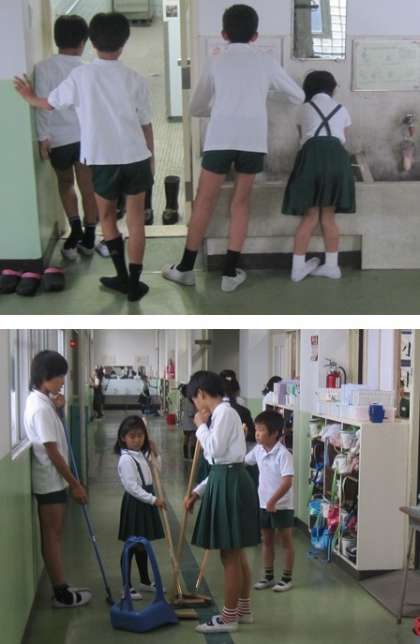 清掃が終わったあとはいつもどおりたてわり班で反省をしてから教室へ戻っていました。