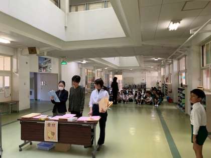 5年生に手伝ってもらって就学時健康診断を行いました。5年生は学校の代表として立派に役割を果たしました。