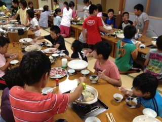 5年生 林間学習 食事中(^o^)