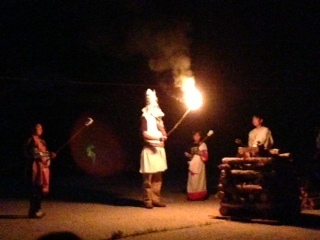 火の神が入場し 誓いの言葉を言った火の御子の火を分け