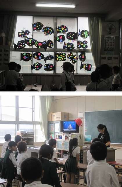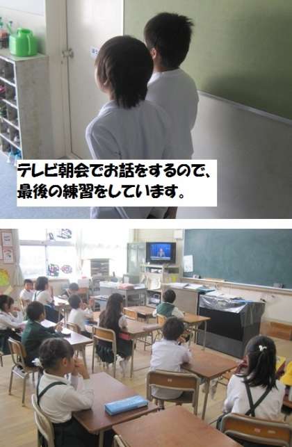今日の児童朝会は昨夜の雨で運動場の状態が良くなかったのでテレビ朝会になりました。