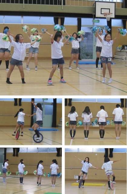 3曲目では、一輪車も組み合わせて工夫されたステージ構成になっていました。