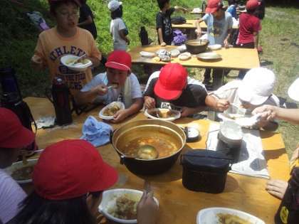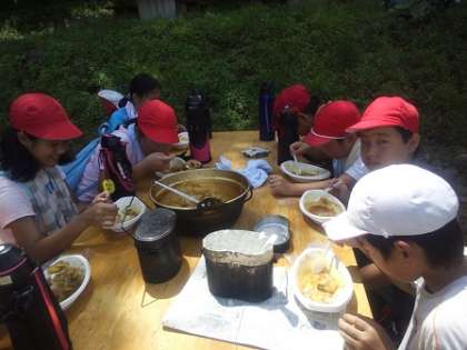 出来上がった班から どんどん カレーを食べていきます。