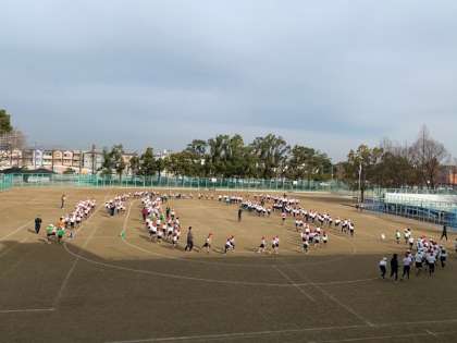 かけあしチャレンジの初日でした。体育委員を先頭にウォーミングUPをした後、自分のペースで走りました。