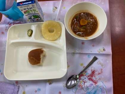 今日のビーフシチューは、ラッキーにんじんでした。ハートや星の形をしたにんじんが入っています。